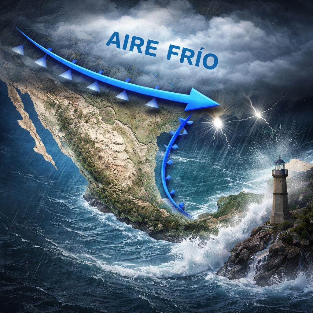 Se pronostican lluvias muy fuertes a intensas en zonas de Veracruz, Oaxaca, Chiapas y Tabasco. Simultáneamente, la masa de aire polar generará un evento de 'Norte' de muy fuerte a intenso en el litoral del Golfo de México, Península de Yucatán e Istmo y Golfo de Tehuantepec, lo que elevará significativamente el oleaje.