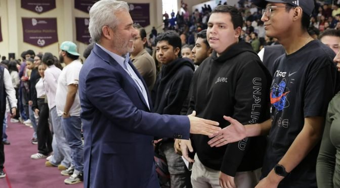 Morelia, Michoacán, 9 de febrero de 2026. El gobernador Alfredo Ramírez Bedolla inició en el Instituto Tecnológico de Morelia la entrega de tarjetas correspondientes a la Beca Gertrudis Bocanegra. Este programa beneficiará a más de 44 mil estudiantes de universidades y tecnológicos públicos del estado con un apoyo bimestral de mil 900 pesos para gastos de transporte.