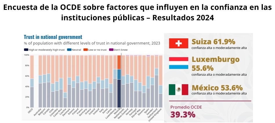 México se ubica entre los tres países de la OCDE con mayor confianza en su gobierno nacional