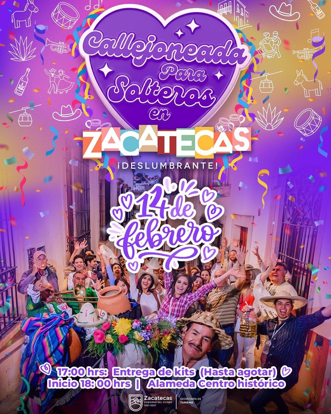 El Gobierno de Zacatecas, a través de la Secretaría de Turismo (Secturz), realizará este fin de semana la segunda edición de la Callejoneada para Solteros, como parte de las actividades conmemorativas del Día del Amor y la Amistad. El evento se enmarca en las estrategias de promoción turística impulsadas por la administración del gobernador David Monreal Ávila.