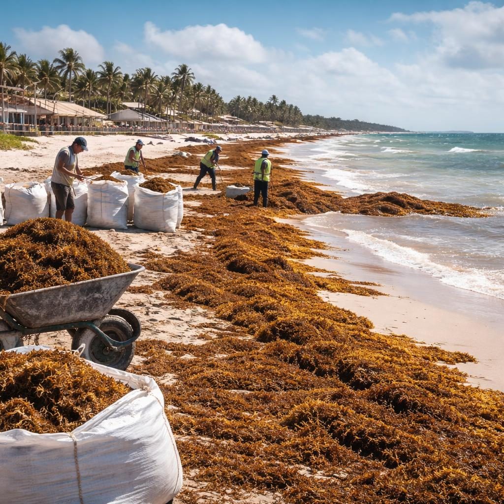 Las brigadas de limpieza trabajan en el retiro del sargazo con el objetivo de proteger al sector turístico, la actividad pesquera y el ecosistema local. Sin embargo, desde las mismas cuadrillas se advierte que la llegada de más cantidades de esta alga podría continuar en los próximos días, lo que complicaría los esfuerzos.