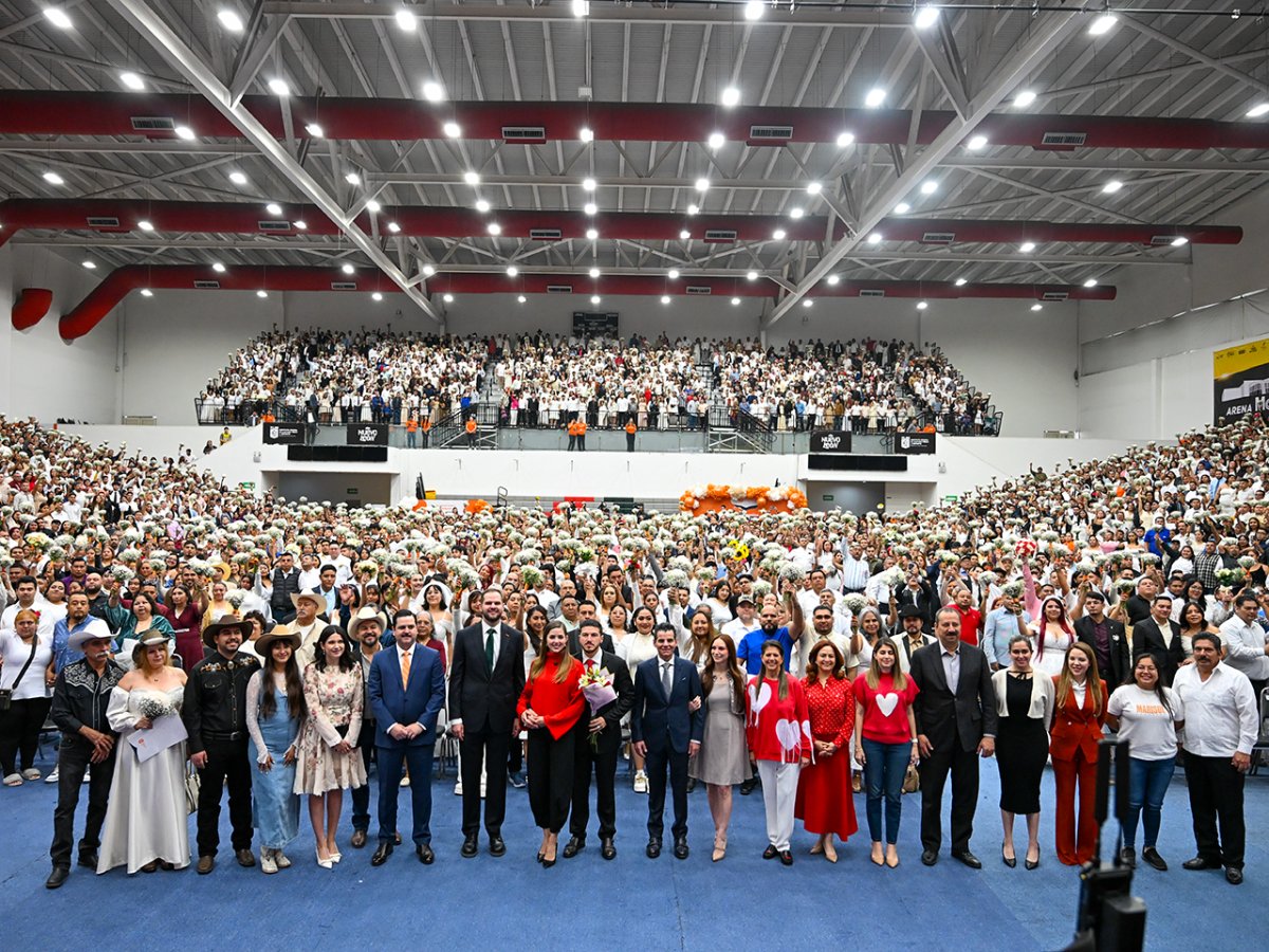 En el marco del Día del Amor y la Amistad, más de 2,500 parejas formalizaron su unión a través del programa de Matrimonios Colectivos del gobierno de Nuevo León. La ceremonia, realizada en el Gimnasio Nuevo León, contó con la presencia del gobernador Samuel Alejandro García Sepúlveda y Mariana Rodríguez Cantú como testigos de honor.