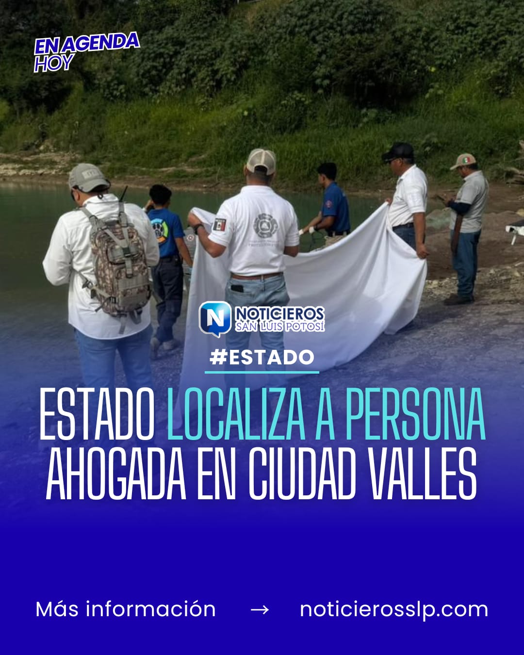 Elementos de Protección Civil Estatal, con apoyo de autoridades municipales y voluntarios, localizaron este domingo el cuerpo de un joven que fue arrastrado por la corriente en un río del Ejido San Carlos, en Ciudad Valles. La víctima fue identificada como Cristian Alexander, de 20 años de edad, originario del Ejido La Lima en la misma localidad.