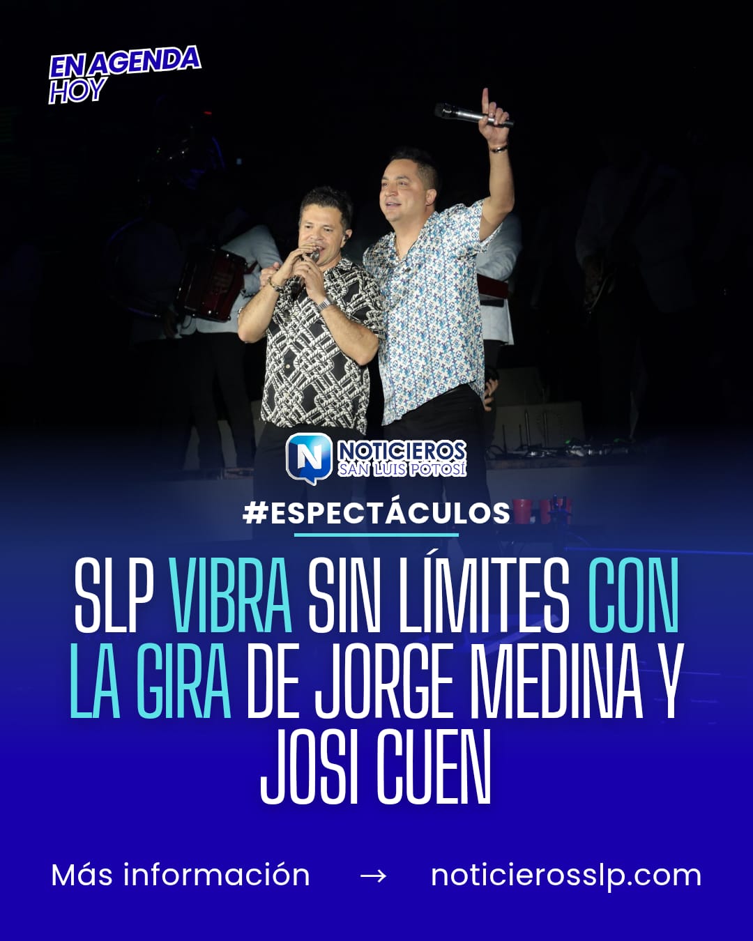 El concierto concluyó con las interpretaciones de “Ya no te buscaré”, “Mi segunda vida” y “De ti exclusivo”. Antes de finalizar, Jorge Medina y Josi Cuen anunciaron su regreso a San Luis Potosí para presentarse en la Feria Nacional Potosina 2026.