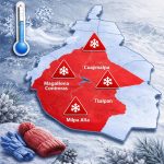 En contraste, se pronostican temperaturas mínimas extremas. En zonas serranas de Chihuahua, Durango, Nuevo León, Estado de México, Hidalgo, Tlaxcala, Puebla y Veracruz se esperan de -10 a -5 °C con heladas. De -5 a 0 °C con heladas se prevén en sierras de Coahuila, San Luis Potosí, Zacatecas, Aguascalientes, Jalisco, Michoacán, Guanajuato, Querétaro y Oaxaca. Temperaturas de 0 a 5 °C se estiman para zonas serranas de Baja California, Sonora, Tamaulipas, Ciudad de México, Morelos, Guerrero y Chiapas.
