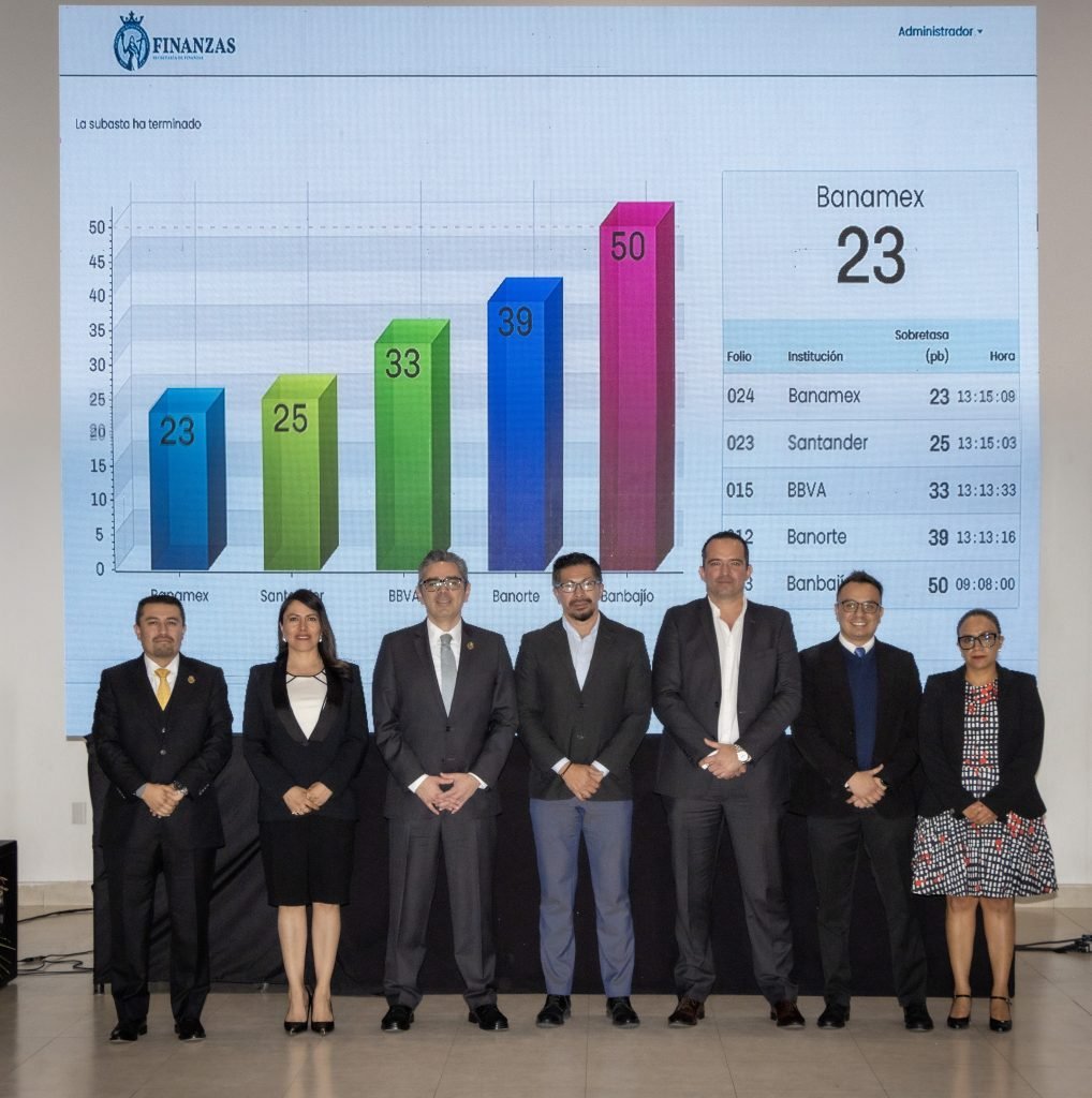 El proceso de selección de las instituciones financieras se realizó mediante tres subastas públicas. En ellas participaron Banco del Bajío, BBVA, Banco Nacional de México (Banamex), Banco Mercantil del Norte y Banco Santander. Como resultado final, BBVA México resultó ganador en dos subastas: una por 1,800 millones de pesos a un plazo de 20 años y otra por 1,500 millones a 15 años. Banamex obtuvo el crédito restante por 700 millones de pesos a un plazo de 10 años.