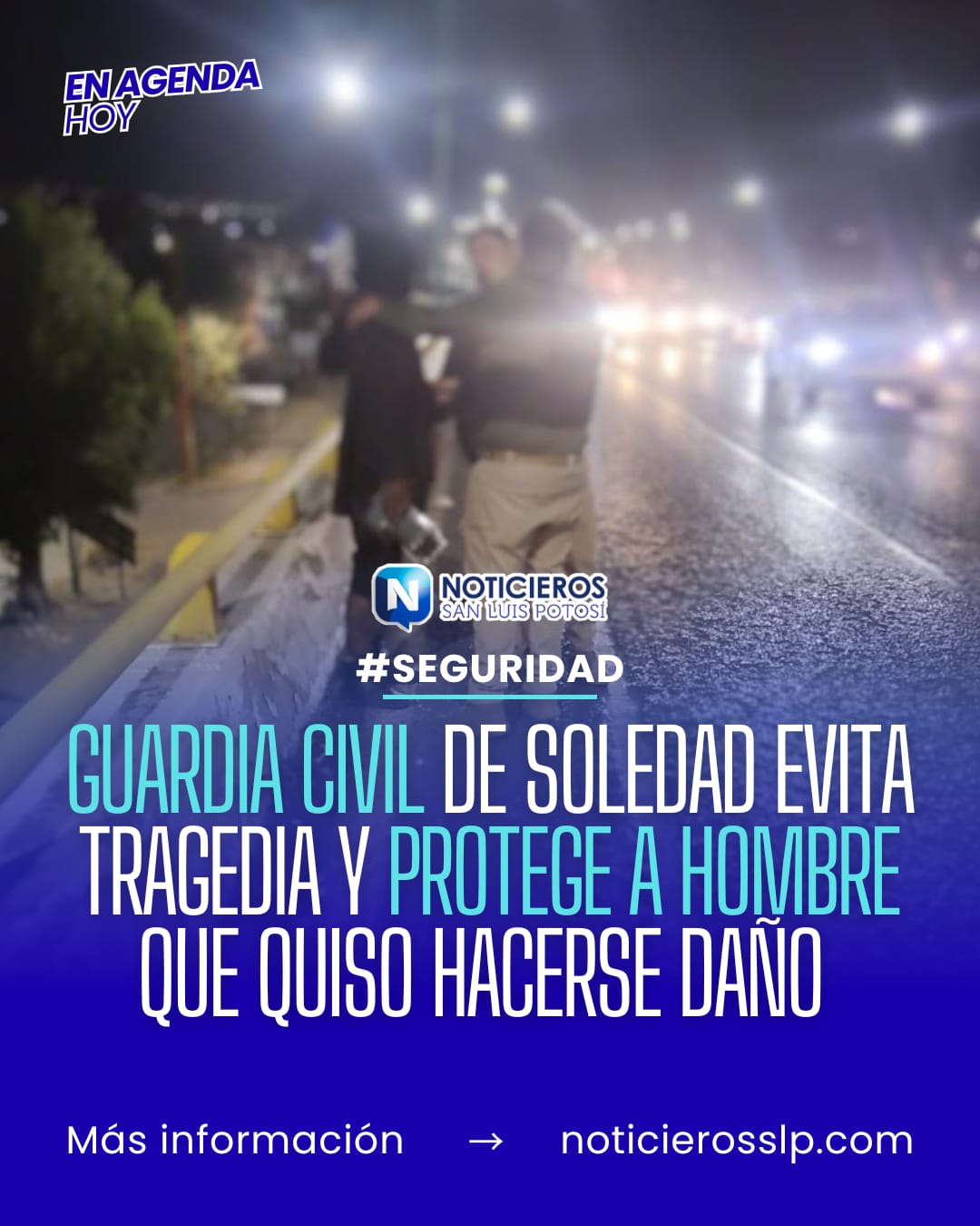 Elementos de la Guardia Civil Municipal de Soledad de Graciano Sánchez intervinieron para evitar que un hombre se arrojara desde un puente vehicular durante la noche del jueves. La acción se desarrolló en el Bulevar Valle de los Fantasmas, a la altura de su cruce con el Circuito Potosí Oriente, luego de que la corporación recibiera un reporte ciudadano alertando sobre la presencia del individuo en lo alto de la estructura.