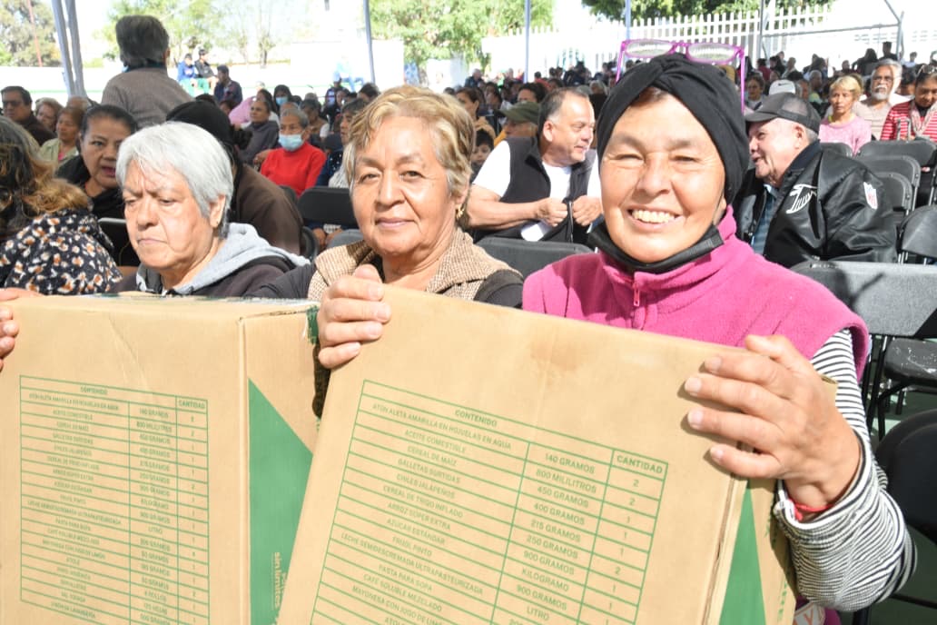 Vecinos adultos mayores de la colonia Fidel Velázquez, en el municipio de Soledad de Graciano Sánchez, recibieron una nueva entrega del Programa Alimentario municipal. Los beneficiarios señalaron que los productos básicos contribuyen a reducir el gasto familiar.