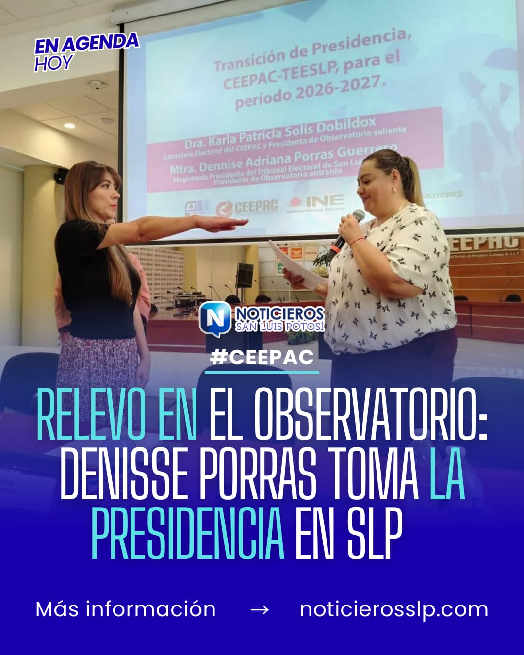El Consejo Estatal Electoral y de Participación Ciudadana (CEEPAC) de San Luis Potosí fue sede del informe anual de actividades y del relevo en la presidencia del Observatorio de Participación Política de las Mujeres. Durante la sesión, se formalizó la toma de protesta de la magistrada Denisse Adriana Porras Guerrero como nueva presidenta del organismo para el periodo 2026-2027.
