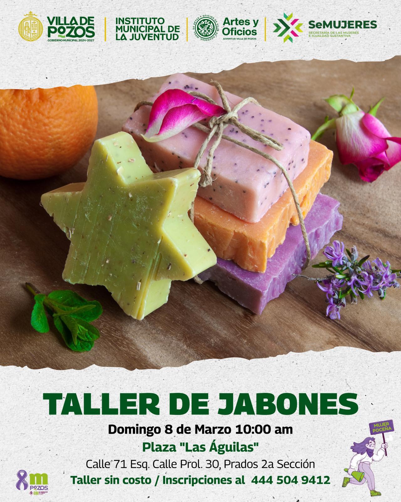 El Gobierno de Villa de Pozos, a través del Instituto Municipal de la Juventud y la Escuela de Artes y Oficios, en coordinación con SeMUJERES, convoca a las mujeres de la localidad a participar en un taller gratuito de elaboración artesanal de jabones. La actividad se enmarca en las conmemoraciones por el Día Internacional de la Mujer.
