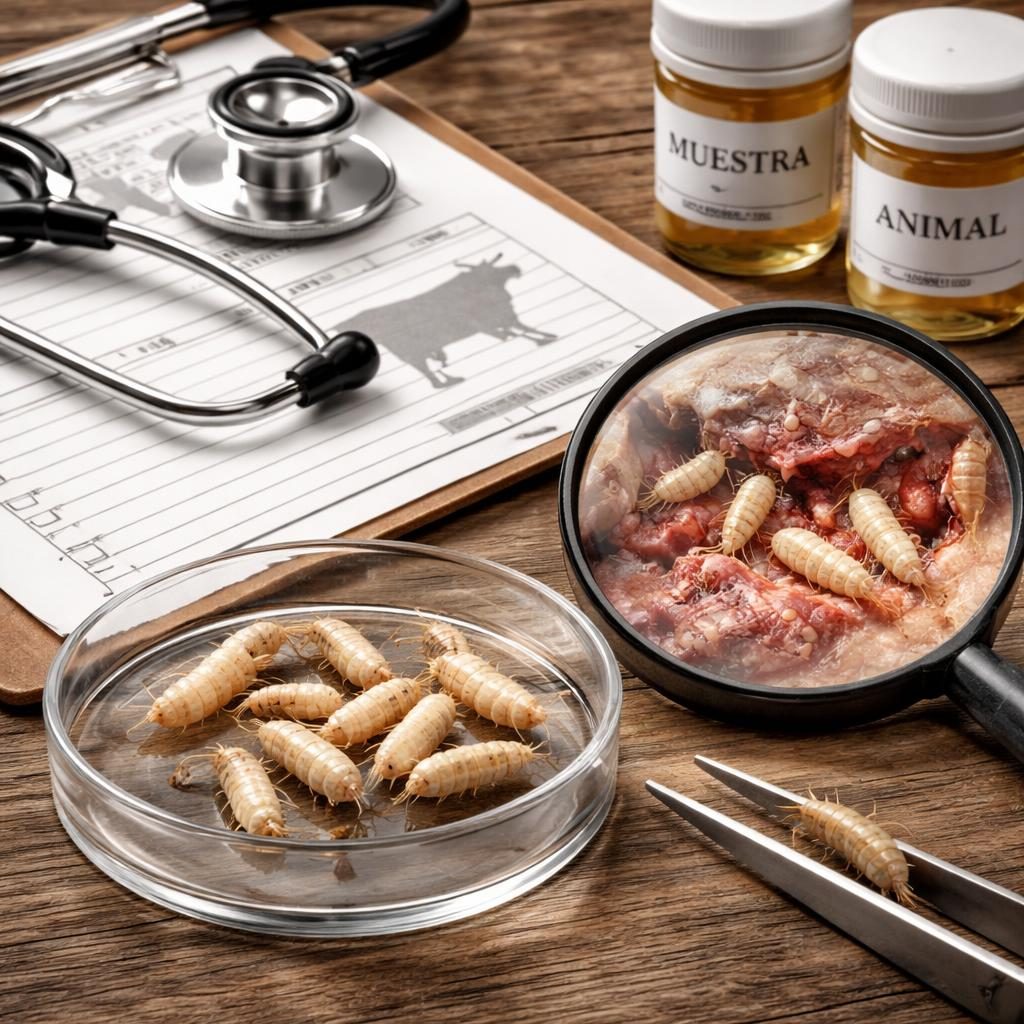 El gusano barrenador, cuya larva se desarrolla en tejidos vivos de animales de sangre caliente, representa una seria amenaza para la salud animal. La infestación, conocida científicamente como miasis, ocurre cuando las moscas depositan sus huevos en heridas abiertas o mucosas de los animales. Las larvas emergentes se alimentan del tejido vivo, provocando lesiones que pueden complicarse con infecciones secundarias.