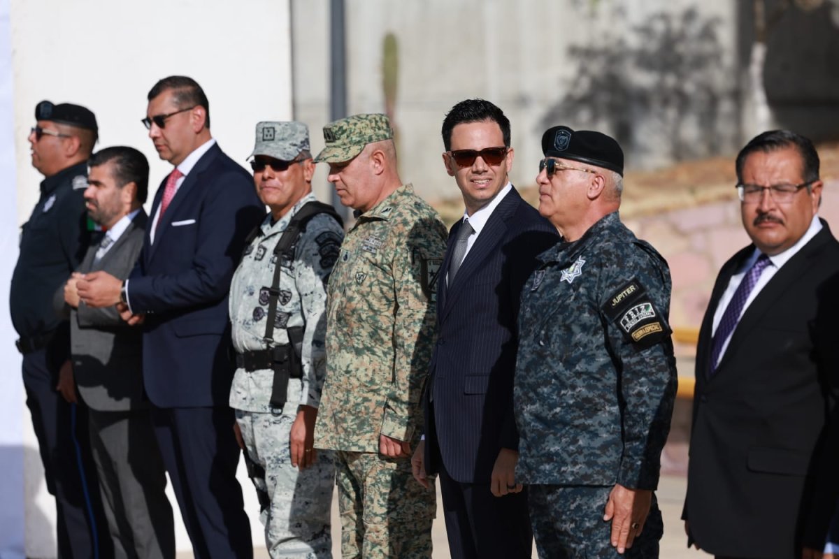 El evento contó con la presencia de representantes de diversas instituciones federales y estatales, incluyendo al Jefe de Estado Mayor del Cuartel General de la Decimoprimera Zona Militar, Hugo Carmona Ortiz; el Coordinador Policial de la Guardia Nacional, Cesáreo Juventino Rojas Popoca; el Secretario de Seguridad Pública estatal, Arturo Medina Mayoral; y el Fiscal General de Justicia del Estado, Cristian Paul Camacho Osnaya.