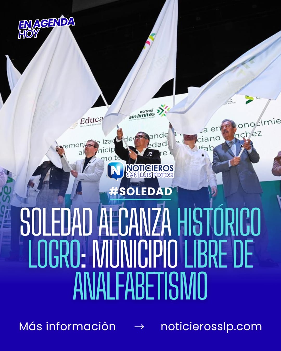 El municipio de Soledad de Graciano Sánchez, en San Luis Potosí, fue declarado oficialmente como libre de analfabetismo durante una ceremonia realizada este 13 de marzo de 2026. El alcalde Juan Manuel Navarro Muñiz recibió la placa conmemorativa y la Bandera Blanca por parte de autoridades educativas en el Teatro ‘Doroteo Arango’.