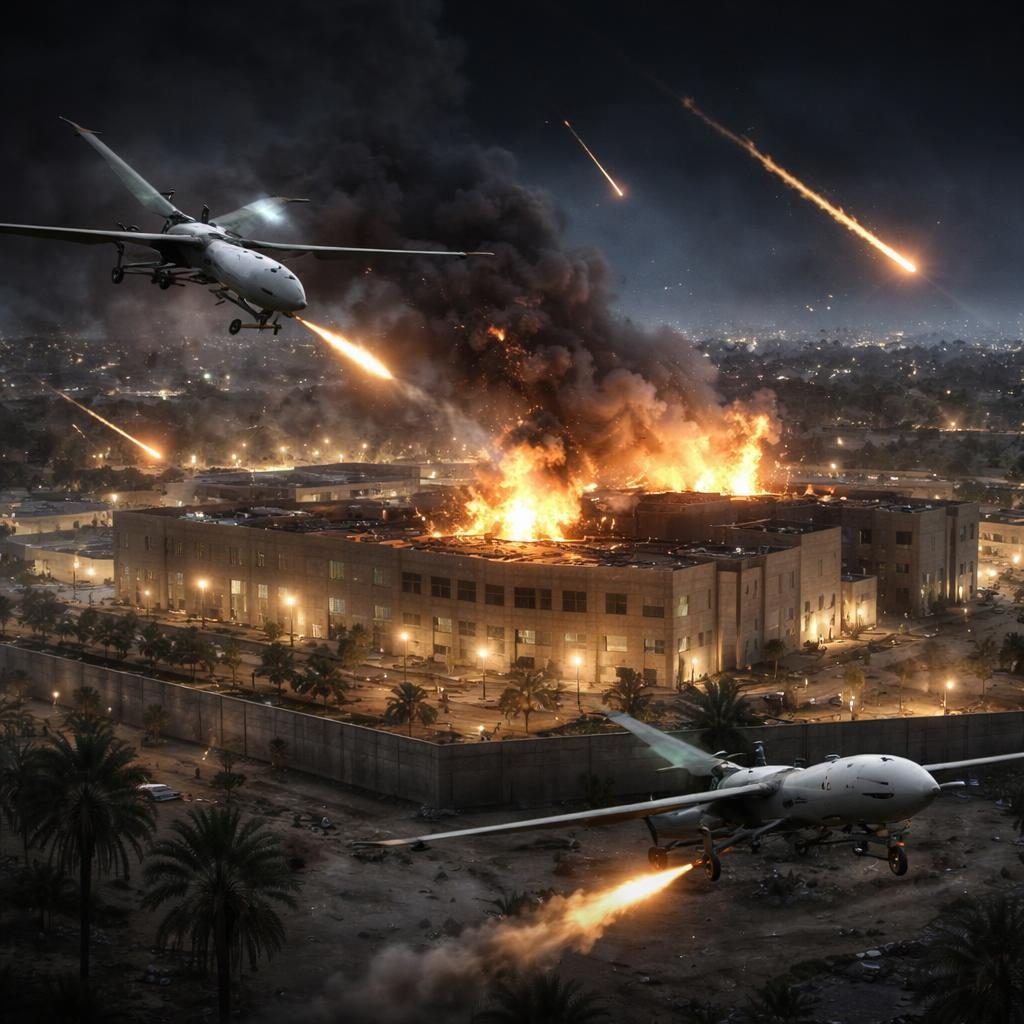 ataque con dronescohetesconflicto Medio OrienteEmbajada EE.UU. Bagdadescalada regionalIrakmilicias proiraníesZona Verde