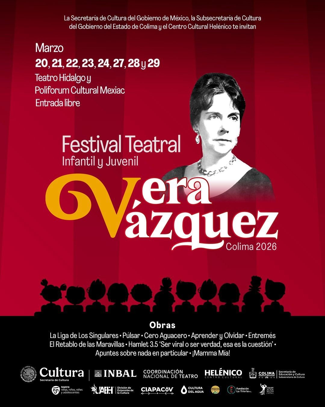 La Secretaría de Cultura del Gobierno del Estado de Colima ha anunciado la organización del primer Festival Teatral Infantil y Juvenil 'Vera Vázquez', un evento que busca fomentar las artes escénicas entre los más jóvenes de la entidad. El festival representa una nueva iniciativa dentro de la oferta cultural estatal, dedicada específicamente a este sector de la población.