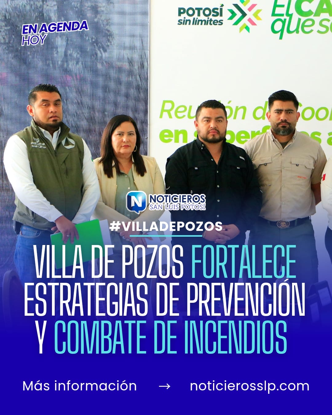 El Gobierno Municipal de Villa de Pozos participó en una reunión de coordinación interinstitucional para fortalecer las estrategias de prevención y combate de incendios en el estado. El encuentro, denominado Reunión de Coordinación para el Manejo del Fuego en Superficies Afectadas, fue encabezado por el gobernador Ricardo Gallardo Cardona y la coordinadora nacional de Protección Civil, Laura Velázquez Alzúa.
