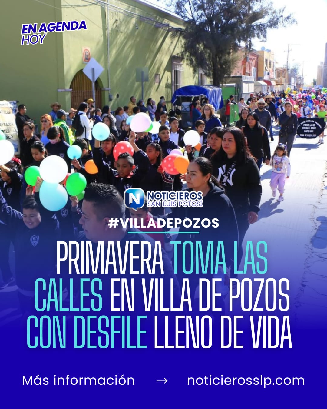 El municipio de Villa de Pozos fue escenario del tradicional Desfile de Primavera 2026, un evento que congregó a familias y diversos sectores de la comunidad en una jornada caracterizada por la música, el color y la creatividad. El recorrido, que partió desde la Plaza Principal, contó con una amplia participación ciudadana y estuvo encabezado por autoridades locales.