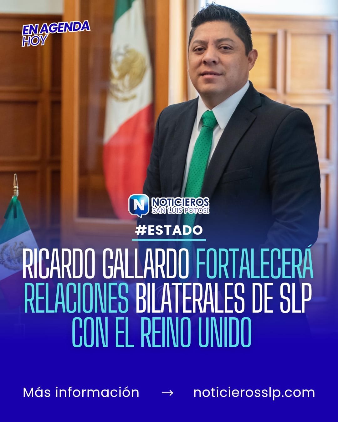 El gobernador de San Luis Potosí, Ricardo Gallardo Cardona, anunció que sostendrá una reunión con la embajadora del Reino Unido en México, Susannah Goshko. El encuentro tiene como objetivo fortalecer las relaciones bilaterales y consolidar acuerdos que impulsen el desarrollo económico del estado.