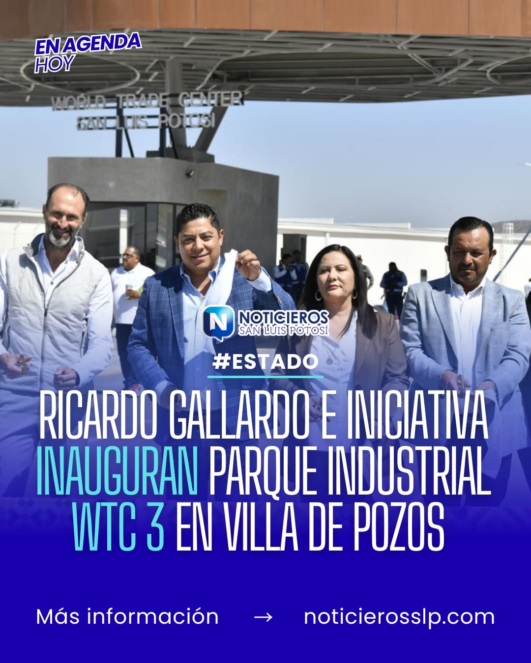 El gobernador de San Luis Potosí, Ricardo Gallardo Cardona, junto con representantes del Grupo Valoran, inauguró oficialmente el nuevo parque industrial World Trade Center (WTC) 3 en la zona de Villa de Pozos. El acto se enmarca en los esfuerzos de la administración estatal por atraer inversión privada y generar empleo en la entidad.