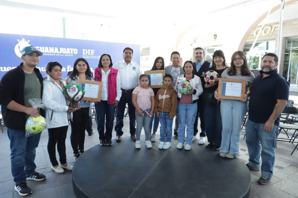 Purísima del Rincón, Gto. – El Sistema para el Desarrollo Integral de la Familia (DIF) del Estado de Guanajuato premió a los ganadores del concurso "Mi familia, mi pasión mundialista", que convocó a familias de los 46 municipios a diseñar balones de fútbol como símbolo de unión y creatividad. La familia Velázquez Amezcua del municipio de Guanajuato obtuvo el primer lugar con un diseño tejido en crochet.
