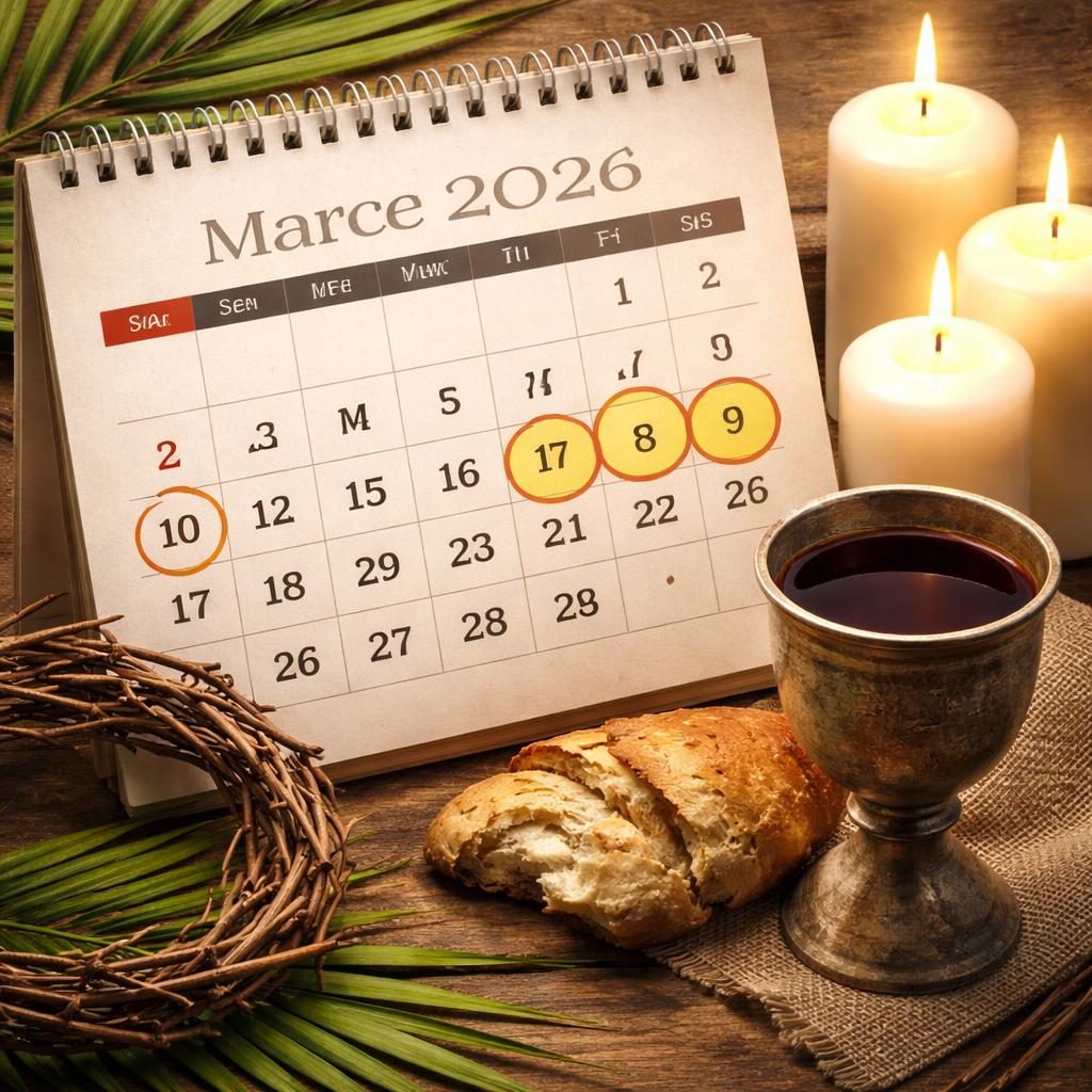 El calendario litúrgico establece una secuencia de días mayores. El Domingo de Ramos, el 29 de marzo, da inicio con representaciones simbólicas de la entrada de Jesús a Jerusalén. Le sigue el Jueves Santo, el 2 de abril, día en que se conmemora la Última Cena, el lavatorio de pies y el arresto de Jesús.