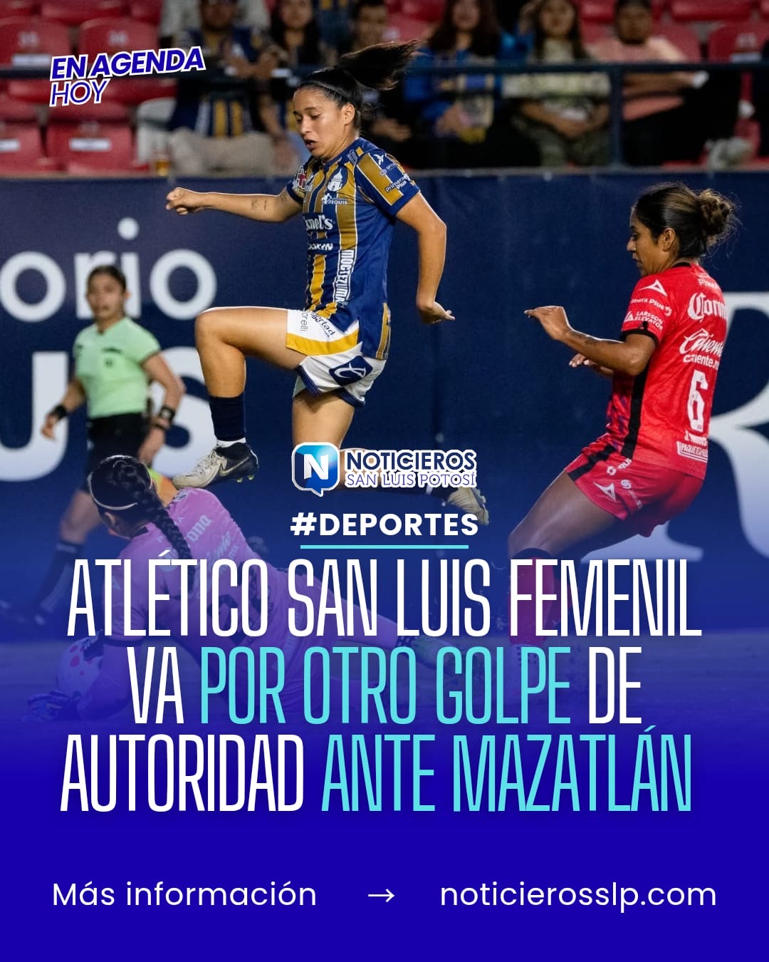 El Atlético de San Luis Femenil se enfrentará a Mazatlán FC este domingo en la jornada 16 del Clausura 2026 de la Liga MX Femenil. El partido se disputará en el Estadio El Encanto, con ambos equipos necesitados de puntos en la recta final del torneo.