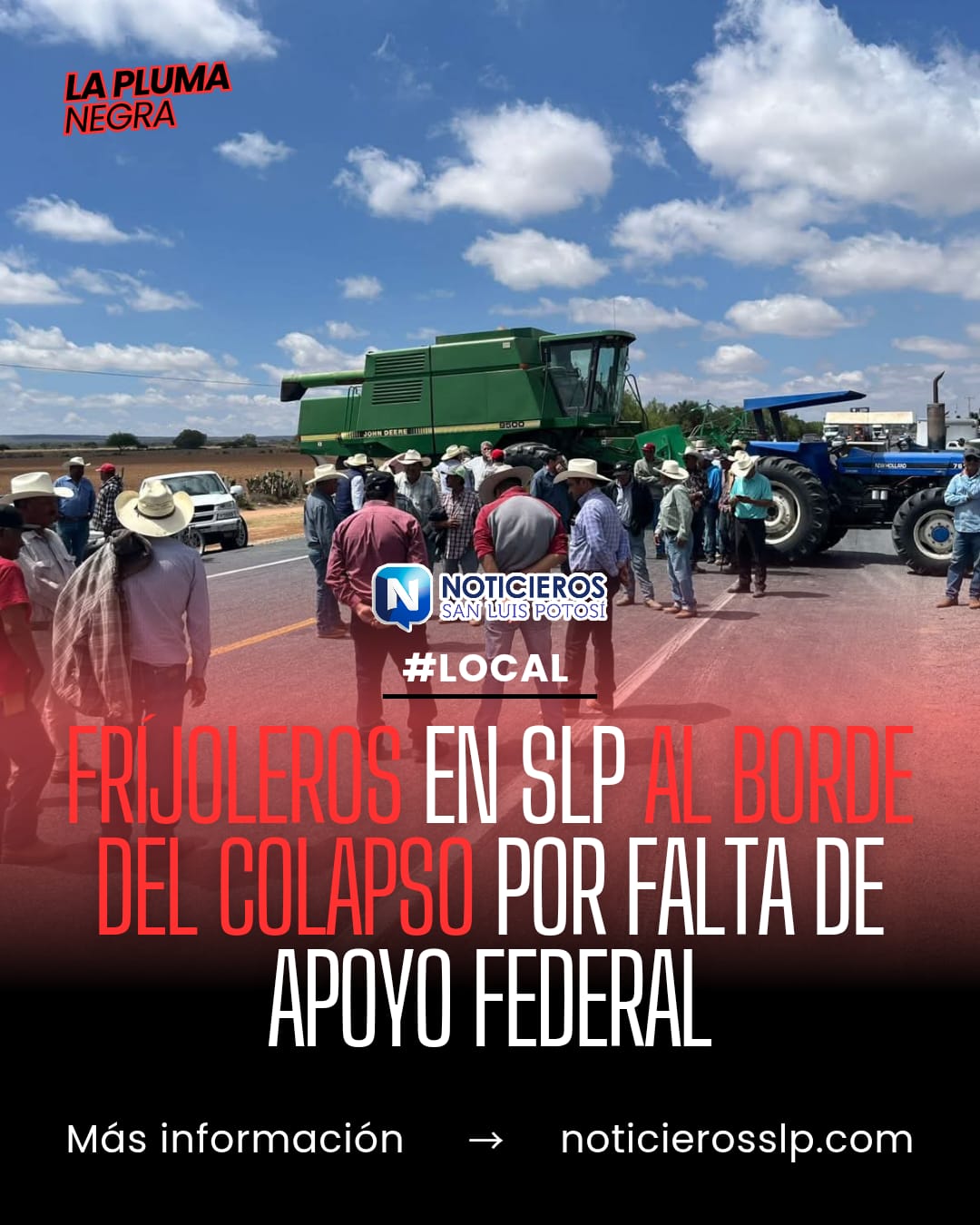 Un grupo de productores agrícolas del altiplano potosino realizó un bloqueo en la carretera a Villa de Arriaga este lunes, como parte de un paro nacional convocado por el sector. La manifestación tiene como objetivo denunciar la falta de acceso a esquemas federales de apoyo que, según los agricultores, les impide comercializar sus cosechas de frijol.