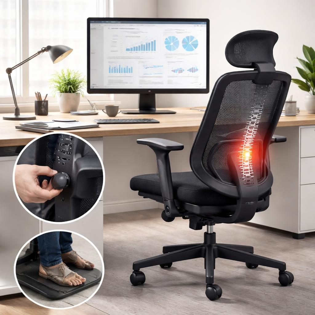 El primer ajuste, y considerado entre los más relevantes, se centra en la configuración de la silla. Los especialistas recomiendan que el usuario pueda apoyar completamente los pies en el suelo, mantener la espalda recta contra el respaldo y relajar los hombros. Para un soporte adicional en la zona lumbar, se sugiere el uso de cojines o soportes específicos diseñados para este fin.