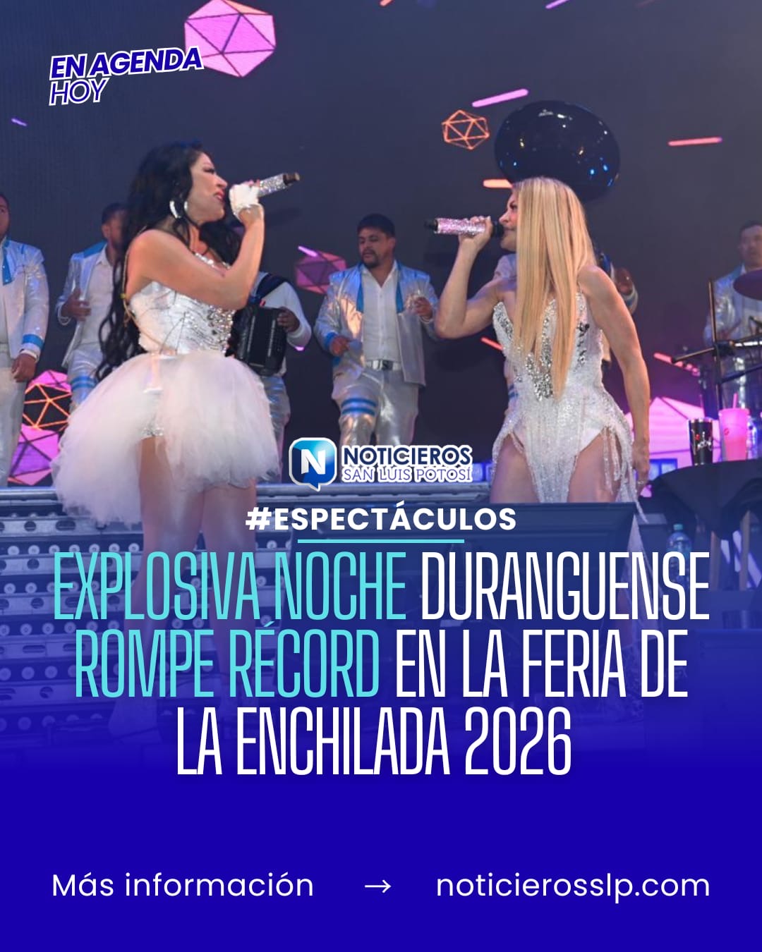 La tercera noche de la Feria Nacional de la Enchilada (FENAE) 2026 en Soledad de Graciano Sánchez, San Luis Potosí, registró un récord histórico de asistencia durante la presentación del grupo Los Horóscopos de Durango. El Teatro del Pueblo alcanzó su máxima capacidad con miles de asistentes provenientes de diversos estados como Aguascalientes, Querétaro, Tampico y Ciudad Valles.