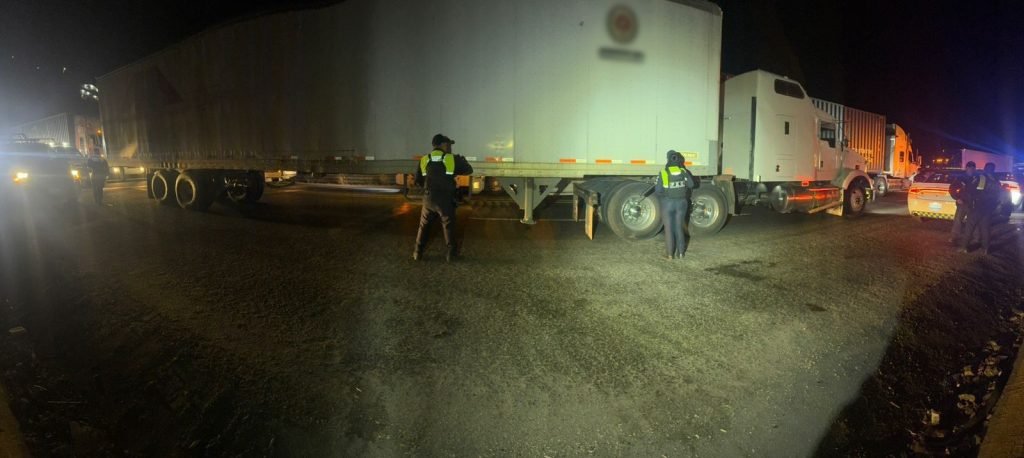 La acción policial se derivó de un reporte emitido por el Sistema Estatal C5I sobre el robo de un vehículo de carga, cuya ubicación fue proporcionada en tiempo real. Los oficiales lograron localizar un semirremolque tipo caja seca, color blanco, que correspondía al vehículo reportado y que transportaba 38 tarimas de tequila.