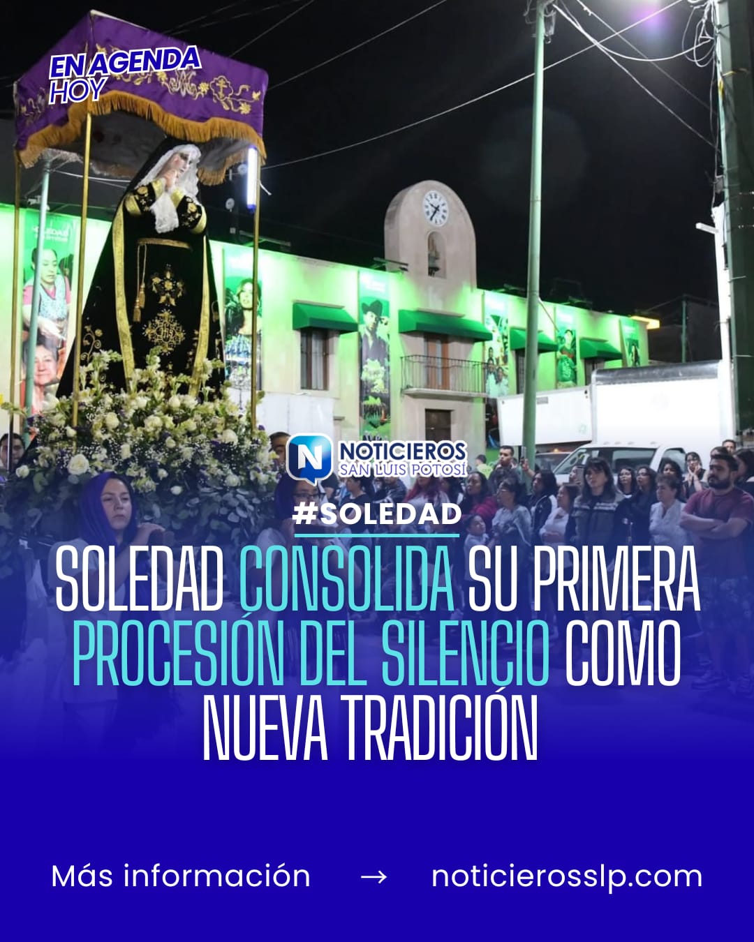 El municipio de Soledad de Graciano Sánchez llevó a cabo su primera Procesión del Silencio, un evento que congregó a cientos de personas y que las autoridades locales buscan consolidar como una nueva tradición. La actividad se desarrolló en un ambiente de solemnidad y respeto, según informaron fuentes municipales.