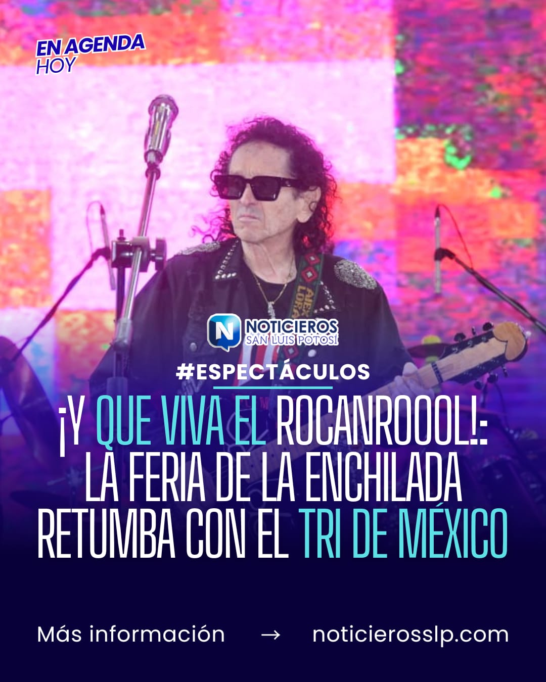 La Feria Nacional de la Enchilada (FENAE) 2026, en Soledad de Graciano Sánchez, San Luis Potosí, vivió su sexta noche de actividades con la presentación de la banda El Tri. El grupo, liderado por Alex Lora, ofreció un concierto en la plaza principal del evento como parte de su extensa gira.