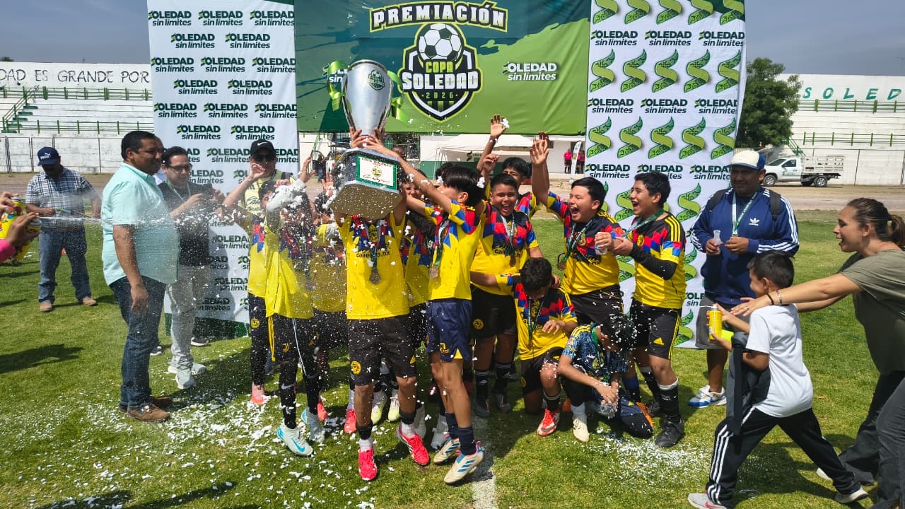 Los equipos Peñarol FC y Cefor Nido Águila se alzaron con los títulos de campeón en las categorías 16-17 y 14-15, respectivamente, durante la final de la Copa Soledad Infantil 2026. Los encuentros decisivos se disputaron en el campo 1 de la Unidad Deportiva ’21 de Marzo’, ubicada en la colonia San Antonio de Soledad de Graciano Sánchez, como parte de las actividades deportivas de la Feria Nacional de la Enchilada.