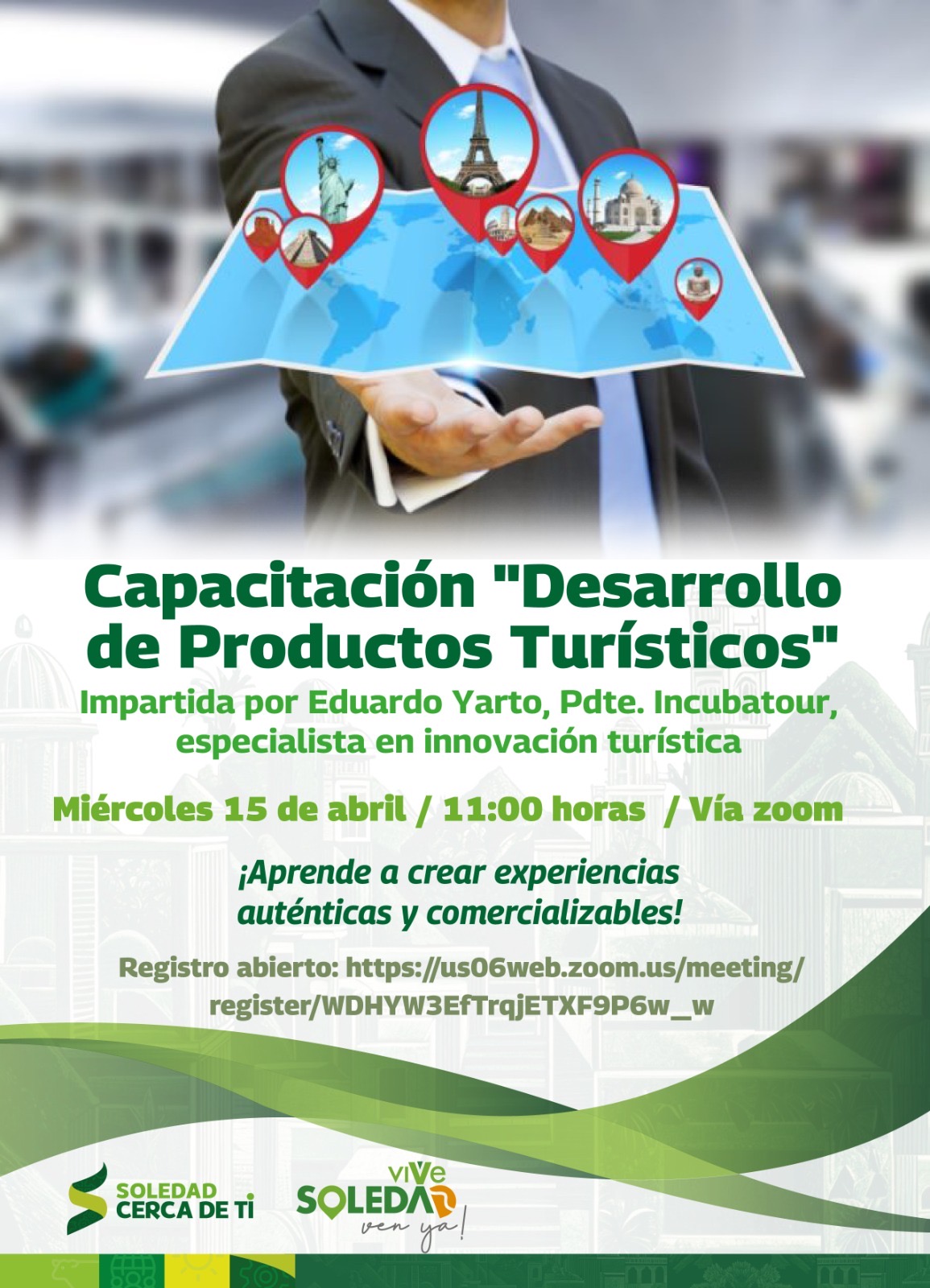 La Dirección de Turismo de Soledad de Graciano Sánchez, en colaboración con la Dirección General de Innovación del Producto Turístico e Incubatour, convoca a prestadores de servicios locales a una conferencia virtual sobre desarrollo de productos turísticos. La sesión, que forma parte de las estrategias municipales de apoyo al sector, se realizará este miércoles 15 de abril, de 11:00 a.m. a 12:30 p.m., a través de la plataforma Zoom.