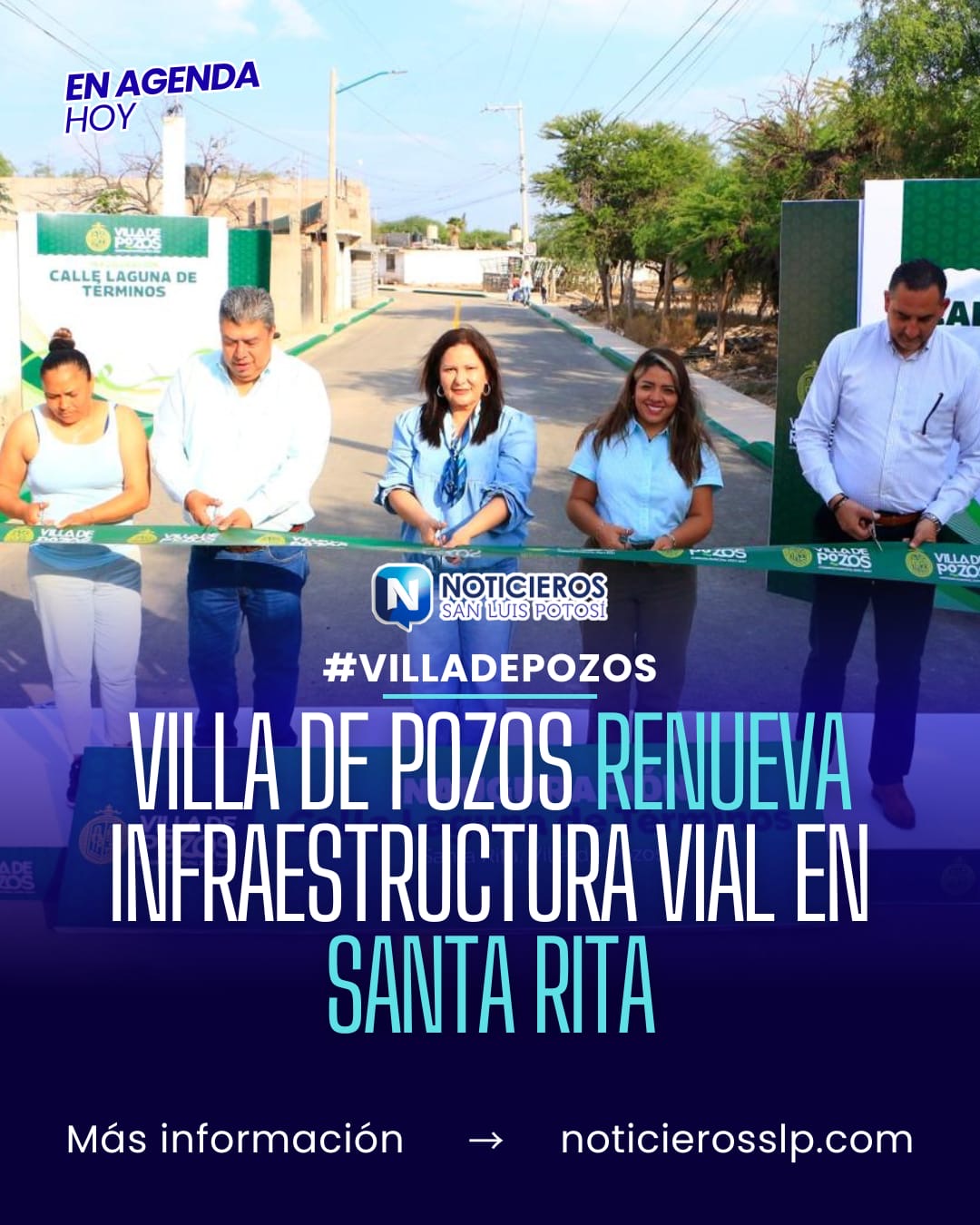 La presidenta concejal de Villa de Pozos, Paty Aradillas Aradillas, entregó formalmente la rehabilitación de la calle Laguna de Términos en la comunidad de Santa Rita. La obra, según informó la administración local, beneficiará a más de dos mil habitantes de la zona.