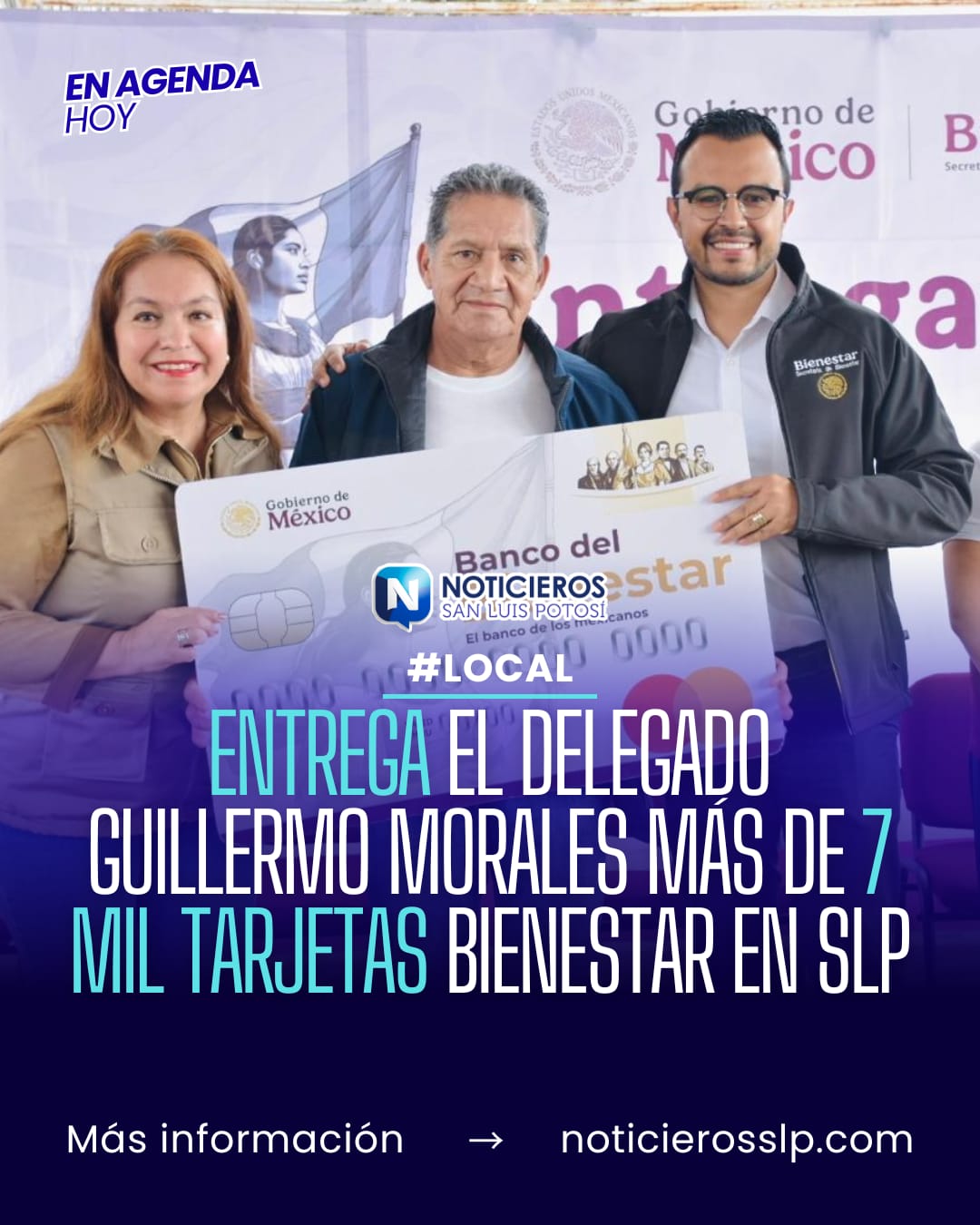 El delegado estatal de los Programas para el Bienestar, Guillermo ‘Memo’ Morales, informó que se está realizando la entrega de más de siete mil Tarjetas Bienestar en el estado de San Luis Potosí. La distribución está dirigida a personas beneficiarias del programa Pensión Mujeres Bienestar y de la Pensión para el Bienestar de las Personas Adultas Mayores.