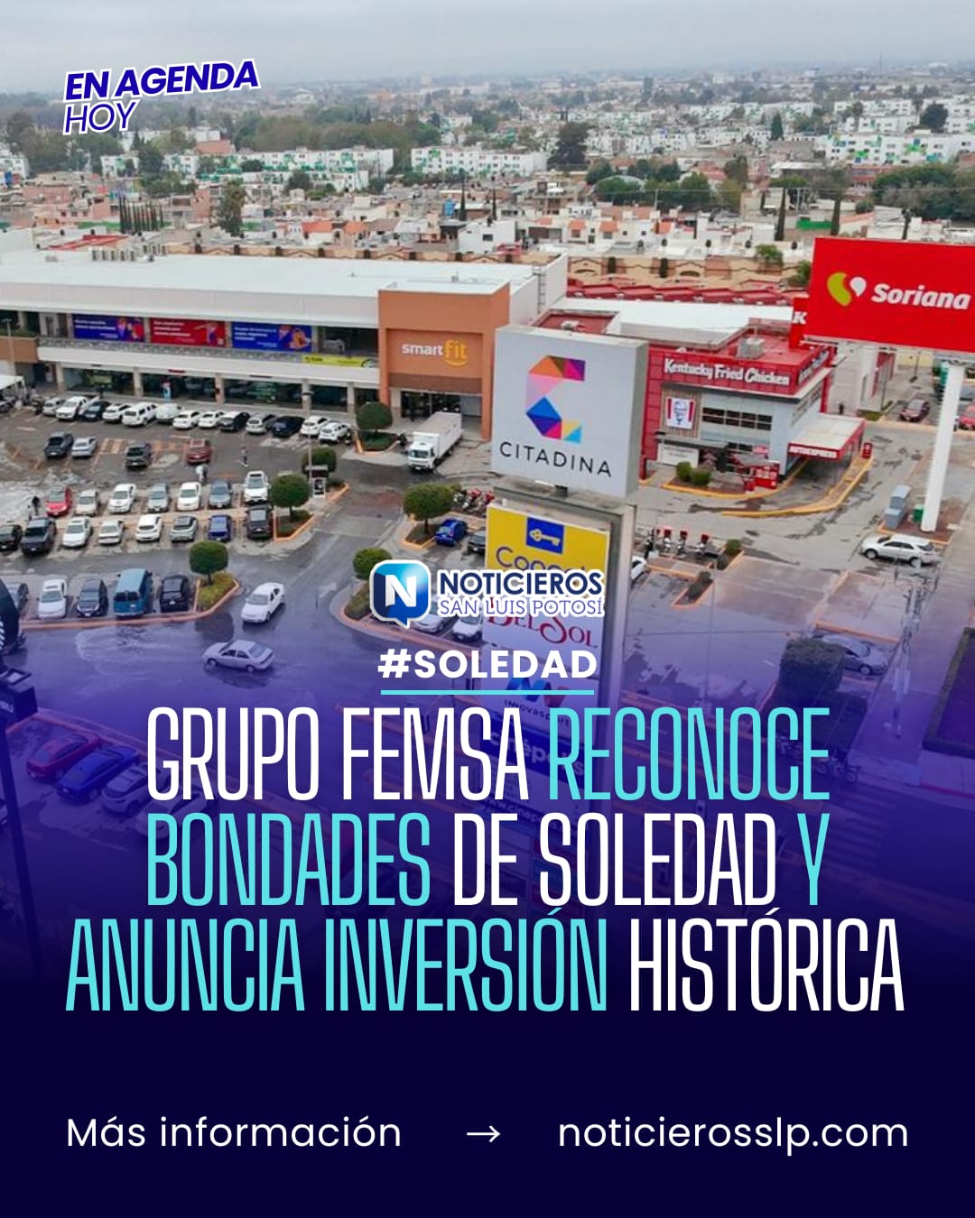 El ayuntamiento de Soledad de Graciano Sánchez, San Luis Potosí, anunció una inversión por parte de Grupo FEMSA superior a los 70 millones de pesos. El proyecto contempla la apertura de 15 nuevas tiendas en el municipio, lo que generará aproximadamente 150 empleos directos.
