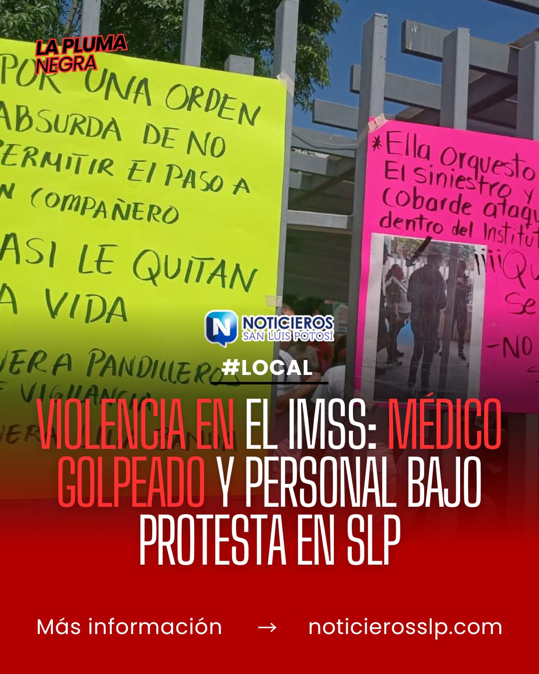 Trabajadores de la Clínica número 2 del Instituto Mexicano del Seguro Social (IMSS) en la colonia Cuauhtémoc, San Luis Potosí, iniciaron labores bajo protesta tras denunciar una agresión física contra un médico por parte de elementos de seguridad privada. El personal responsabiliza a directivos del centro de salud por permitir un entorno de hostigamiento y violencia institucional.