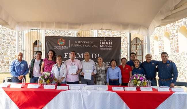 El Instituto Nacional de Antropología e Historia (INAH) y el ayuntamiento de Totolapan, en Morelos, firmaron un convenio marco de colaboración y coordinación con el objetivo de realizar acciones conjuntas para la protección, conservación, restauración, recuperación y difusión del patrimonio paleontológico, arqueológico e histórico del municipio.