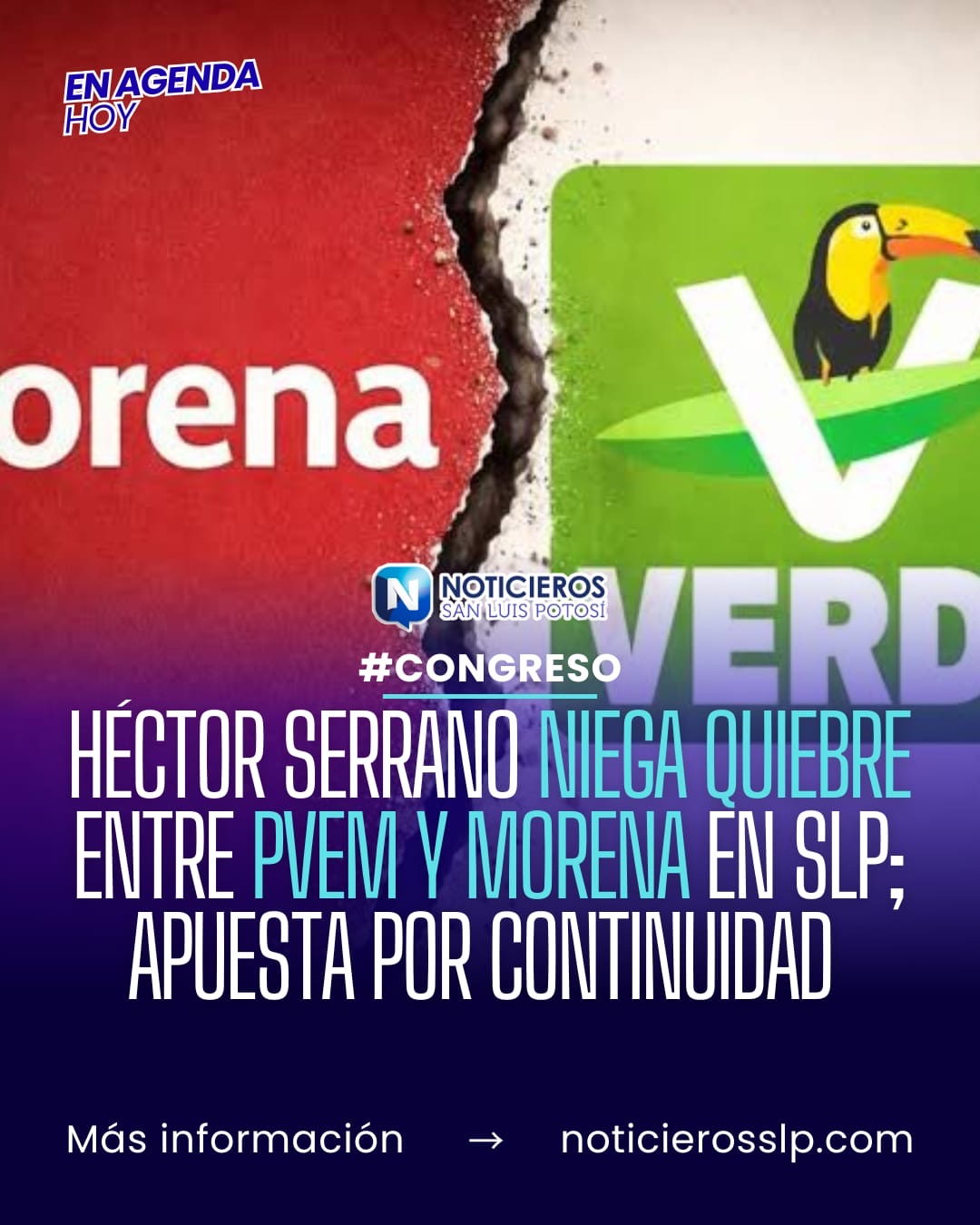 En medio de especulaciones sobre una posible fractura en la coalición oficialista, el diputado Héctor Serrano Cortés negó cualquier distanciamiento entre el Partido Verde Ecologista de México (PVEM) y Morena en San Luis Potosí. El legislador aseguró que la relación entre ambas fuerzas políticas se mantiene sólida y alineada con objetivos comunes, desmintiendo versiones de un quiebre.
