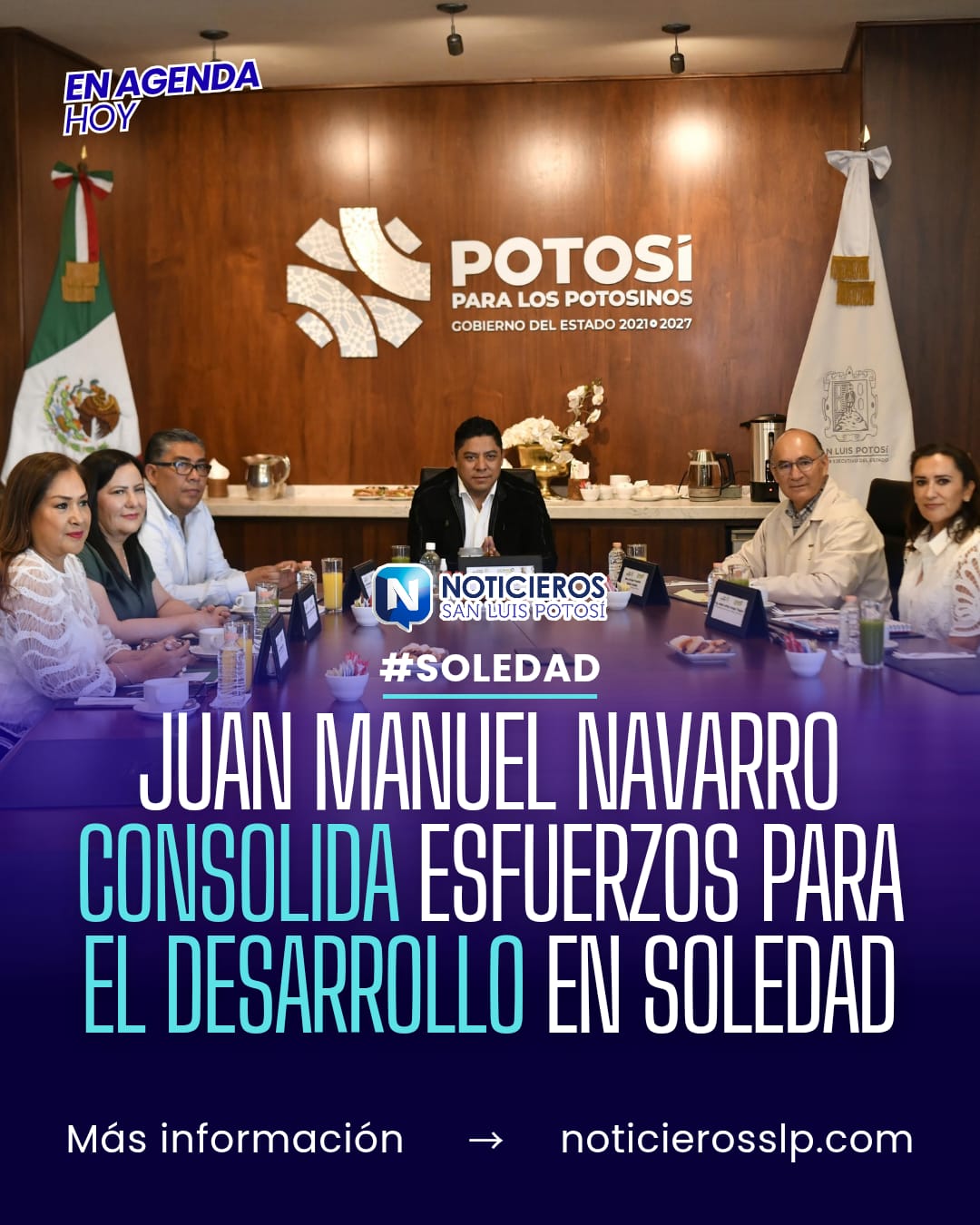 El alcalde de Soledad de Graciano Sánchez, Juan Manuel Navarro Muñiz, encabezó una reunión de trabajo con el gobernador del Estado, Ricardo Gallardo Cardona, y autoridades de la capital potosina y el municipio de Villa de Pozos, con el objetivo de avanzar en la consolidación de una zona urbana ordenada, con desarrollo social y crecimiento integral. El encuentro se enmarca en la guía de cercanía y resultados que impulsa su administración, para avanzar en proyectos estratégicos que mejoran la movilidad y elevan la calidad de vida de las familias soledenses.
