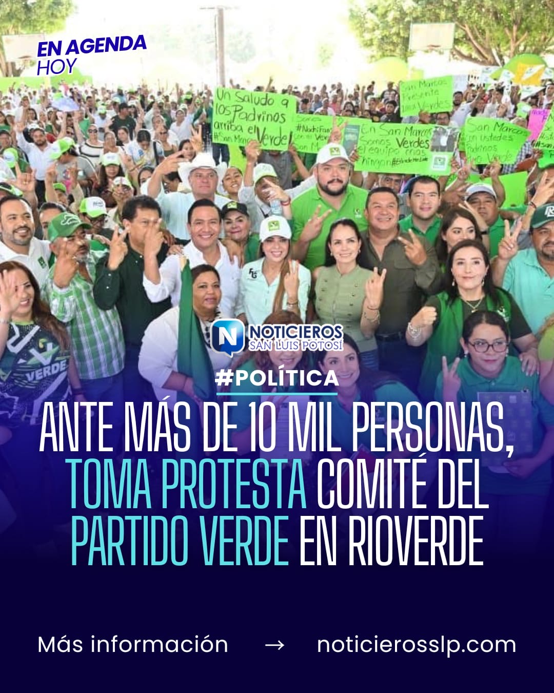 La Senadora Ruth González Silva tomó protesta al nuevo Comité Municipal del Partido Verde Ecologista de México en Rioverde, San Luis Potosí, en un evento que reunió a más de 10 mil personas provenientes de colonias y comunidades del municipio. Durante su mensaje, convocó a los militantes a salir casa por casa para convertirse en gestores cercanos de las necesidades de la gente, con el objetivo de refrendar el triunfo electoral en 2027.