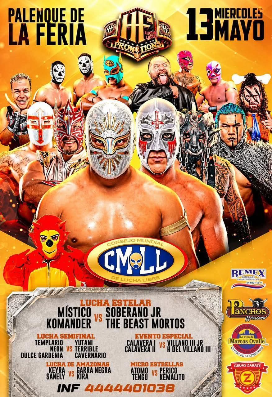 San Luis Potosí será sede de una función de lucha libre del Consejo Mundial de Lucha Libre (CMLL), programada para el 13 de mayo en el Palenque de la Feria Nacional Potosina (Fenapo). El evento forma parte de las actividades impulsadas por el gobernador Ricardo Gallardo Cardona para fomentar la convivencia familiar y ofrecer espectáculos de calidad en la entidad.