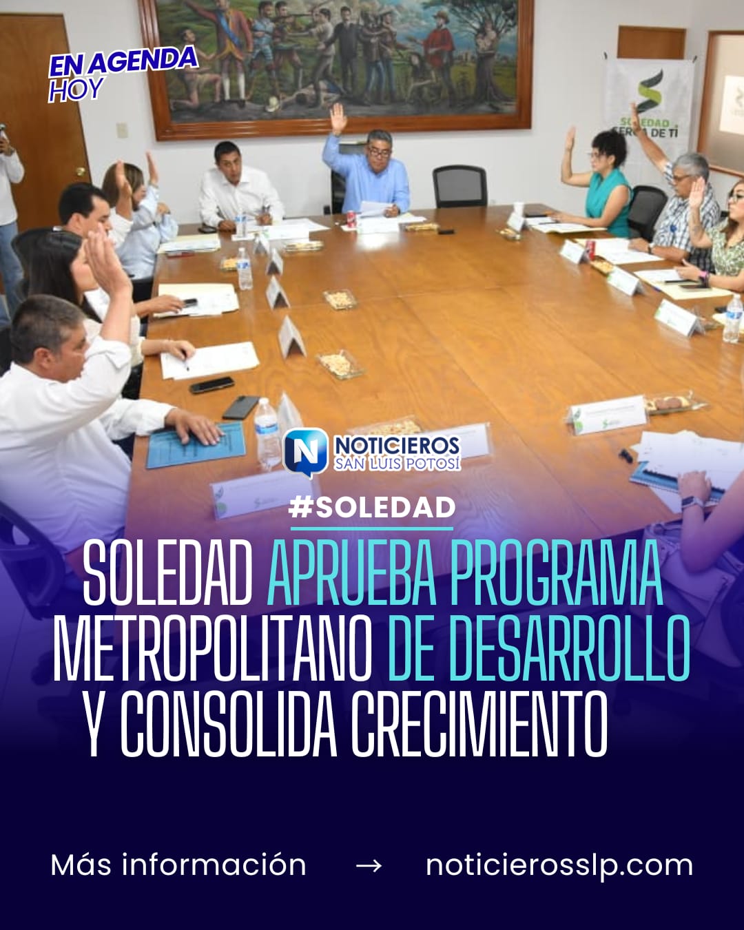Juan Manuel Navarro Muñiz, Alcalde de Soledad de Graciano Sánchez, encabezó la trigésimo tercera y trigésimo cuarta sesiones ordinarias de Cabildo, donde se aprobaron acuerdos clave para el desarrollo ordenado y el fortalecimiento financiero del municipio. Destacó la validación de un instrumento de planeación metropolitana de largo alcance que define el rumbo urbano, social y económico de la región, así como el dictamen de estados financieros del primer trimestre del año. Esto consolida una administración cercana que escucha y atiende las necesidades de las familias.
