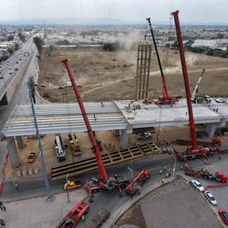 Implementan cierres viales en laterales por montaje de estructuras para sistema atirantado