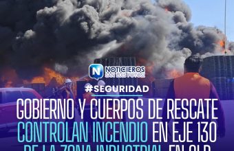 Controlan incendio en empresa vidriera del Eje 130 en SLP; evacúan a 200 personas sin lesionados