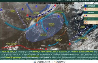 Este sábado 18 de abril de 2026, el frente frío 45 se extenderá sobre el norte...