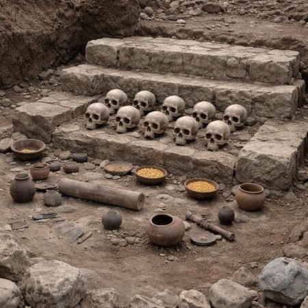 INAH descubre altar tolteca con ofrendas de cráneos humanos durante obras del tren México-Querétaro