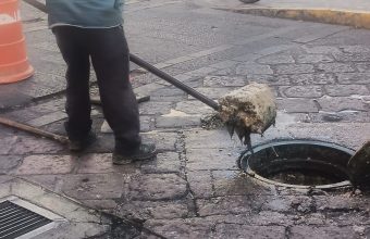 Una obstrucción severa en la red sanitaria de la calle San Fernando, en la...