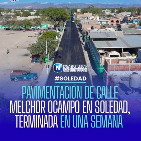 Municipio de Soledad reporta avance del 50% en pavimentación de calle Melchor Ocampo